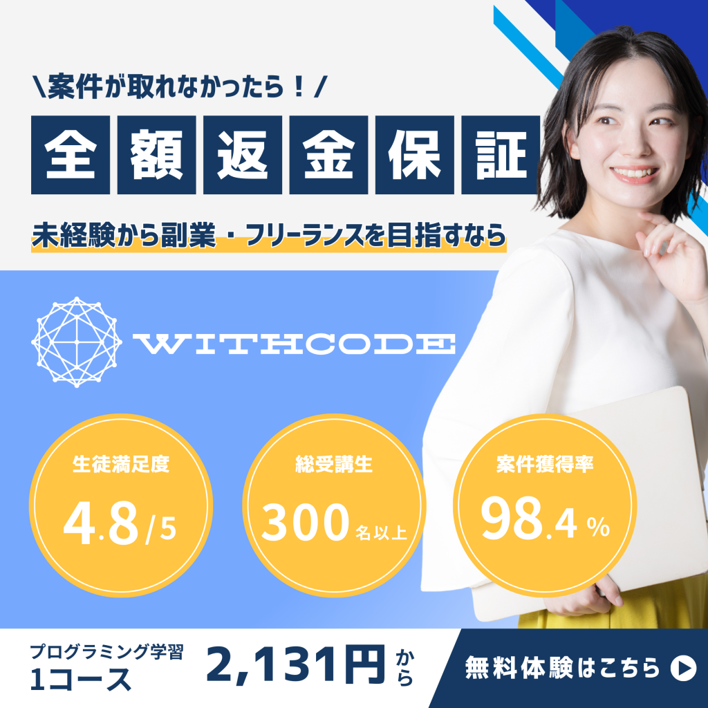 現在、Webデザインのスキル習得を目指して、オンラインスクール「WithCode(ウィズコード)」のカリキュラムを進めています。 まだ学習途中ではありますが、ここまでの個人的な感想をまとめます。
